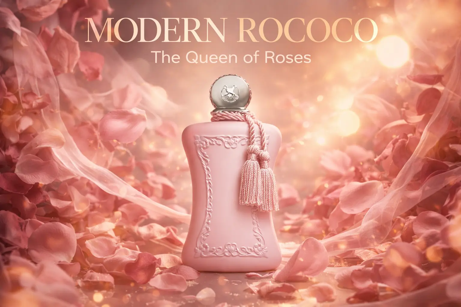 • The Bottle: A stunning frosted pink vessel adorned with the signature heavy silver cap and soft tassel—it is a vanity statue that screams opulence and feminine grace before you even spray it.