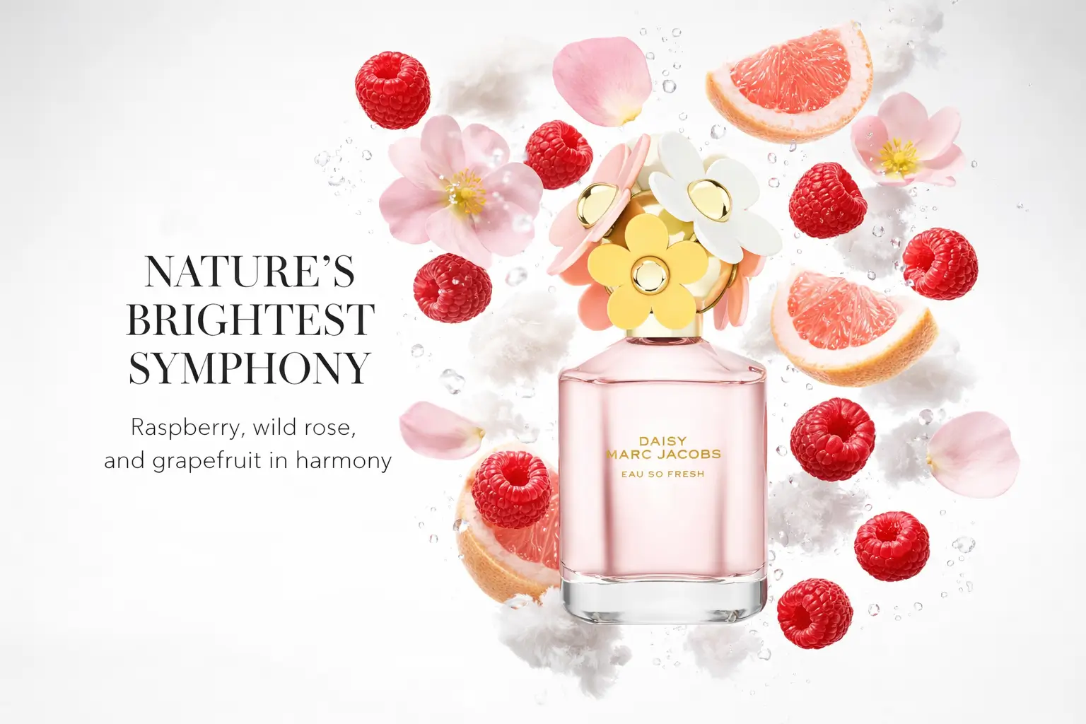 - Opening notes of Raspberry and Grapefruit deliver a zingy, bright sparkle that wakes up the senses instantly, reminiscent of a splash of chilled juice at sunrise.